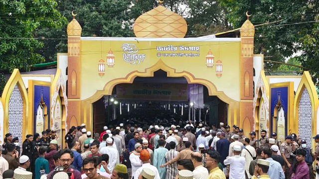 ঈদের জামাতে অংশ নিতে শনিবার (২১ মার্চ) ভোর থেকেই মুসল্লিরা বায়তুল মোকাররমে জড়ো হতে থাকেন। সকাল ৭টায় প্রথম জামাত শুরুর আগেই মসজিদ কানায় কানায় পূর্ণ হয়ে যায়।