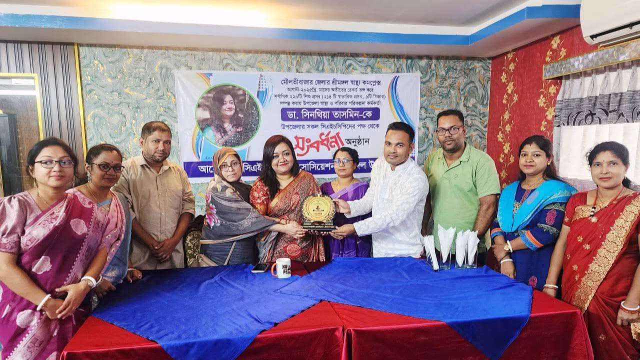 মৌলভীবাজারের শ্রীমঙ্গল উপজেলা স্বাস্থ্যকমপ্লেক্স অতীতের সকল রেকর্ড ভেঙ্গে দিয়ে নতুন রেকর্ড তৈরি করেছে। গত আগস্ট মাসের পর্যালোচনায় উপজেলা স্বাস্থ্য কমপ্লেক্সে সর্বাধিক ২২০ টি শিশু প্রসব (২১৪ টি স্বাভাবিক প্রসব,৬ টি সিজার) সম্পন করায় উপজেলা স্বাস্থ্য ও পরিবার পরিকল্পনা কর্মকর্তা ডা: সিনথিয়া তাসমিনকে শনিবার (২০শে সেপ্টেম্বর) দুপুরে শ্রীমঙ্গল শহরের একটি হোটেল এন্ড পার্টি সেন্টারের হল রুমে উপজেলার সকল সিএইচসিপিদের পক্ষ থেকে সংবর্ধনা প্রদান করা হয়। এতে উপস্থিত ছিলেন উপজেলা স্বাস্থ্যকমপ্লেক্সের আবাসিক মেডিকেল অফিসার ডা.শারমিন আক্তার। স্বাস্থ্য কমপ্লেক্সের সকল কর্মকর্তা কর্মচারীবৃন্দ। উক্ত সংবর্ধনা অনুষ্ঠানে আরও উপস্থিত ছিলেন সিএস অফিসের পরিসংখ্যানবিদ এটিএম আনোয়ার গাজী, সদর উপজেলার অফিস প্রধান ফারুক মিয়া। তারা বলেন এ সংবর্ধনার মাধ্যমে স্বাস্থ্য ও পরিবার পরিকল্পনা কর্মকর্তা ডা. সিনথিয়া তাসমিন এর দিকনির্দেশনা মোতাবেক আজকের এই অর্জন।