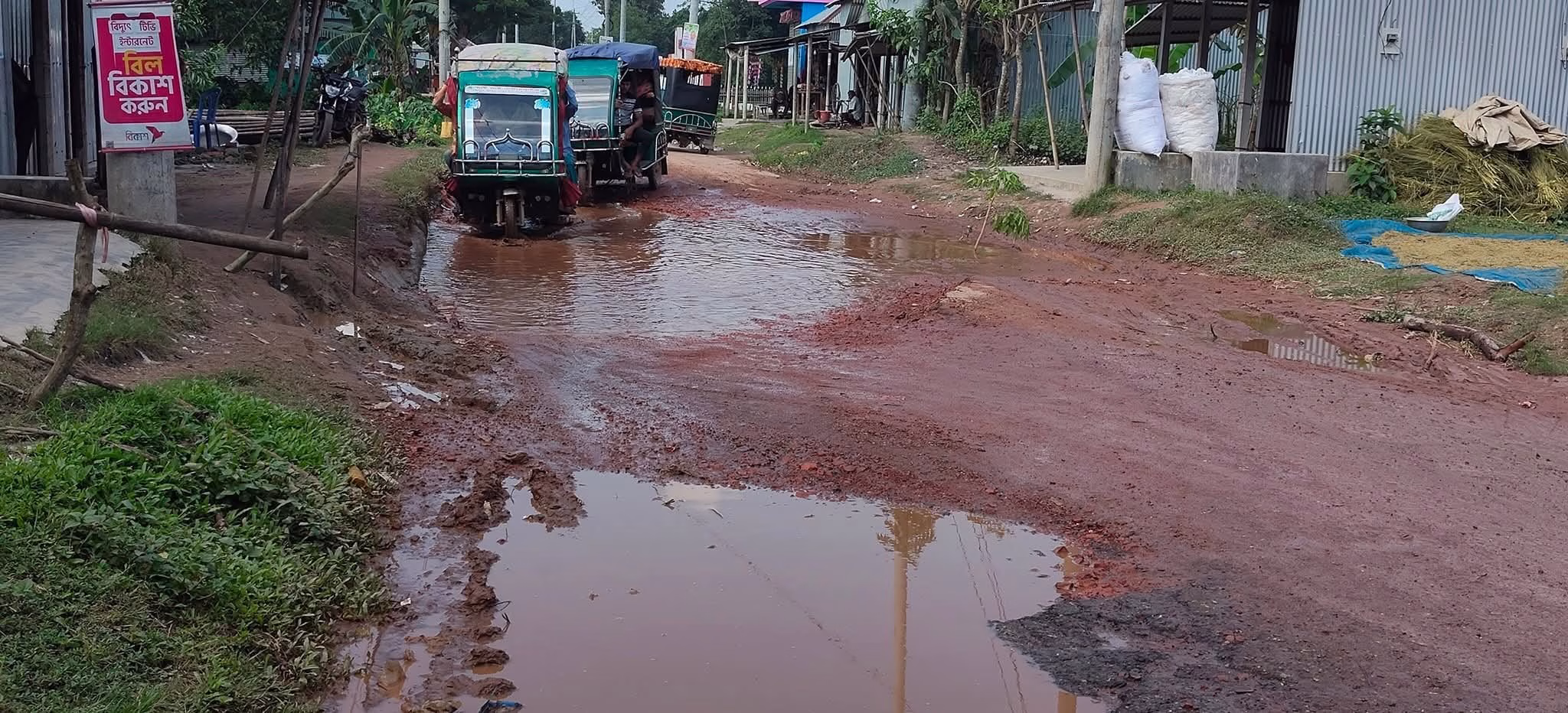 বন্যায় ক্ষতিগ্রস্ত পল্লী সড়ক অবকাঠামো পুনর্বাসন প্রকল্পের আওতায় ২০২৪ সালের সেপ্টেম্বর মাসে টাঙ্গাইল নির্বাহী প্রকৌশলীর কার্যালয় থেকে দুইটি কার্যাদেশ প্রদান করা হয়। এর মধ্যে মেসার্স কৃষ্ণা স্টুডিওকে ৪৫০০ মিটার থেকে ৮৬৮৫ মিটার পর্যন্ত মোট ৪.১৮৫ কিলোমিটার অংশের কাজ এবং এম,এস নাইস ট্রেডার্সকে ০ থেকে ৪৫০০ মিটার পর্যন্ত মোট ৪.৫ কিলোমিটার অংশের কাজের দায়িত্ব দেওয়া হয়। দুই প্রতিষ্ঠানের মোট চুক্তিমূল্য প্রায় ৯৭ কোটি ৭৫ লাখ টাকা। সংস্কার কাজ শুরু হয় ২ অক্টোবর ২০২৪ এবং শেষ হওয়ার কথা ছিল ২০২৫ সালের ৩০ এপ্রিলের মধ্যে । কিন্তু সংশ্লিষ্ট ঠিকারদার সড়কের এক পাশের মাটি খুড়ে কাজ না করেই লাপাত্তা হন। ফলে সীমাহীন দূর্ভোগ ও অবর্ণনীয় কষ্টে মধ্যে পড়েছে এ সড়কের ছোট বড় যানবাহনসহ পথচারিরা। ইজিবাইক চালক আবুল বলেন, রাস্তার পাশে গর্ত করে রাখায় গাড়ি ওভারটেকিং করতে গিয়ে মাঝে মধ্যেই দূর্ঘটনার শিকার হতে হয়। ব্যবসায়ী আলিম মিয়া জানান, পণ্য পরিবহনের সময় ট্রাক-ভ্যান গর্তে আটকে যায়। সময়মতো পণ্য পৌঁছাতে পারছি না, ব্যবসায় ক্ষতিগ্রস্ত হচ্ছি।